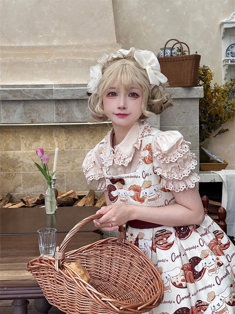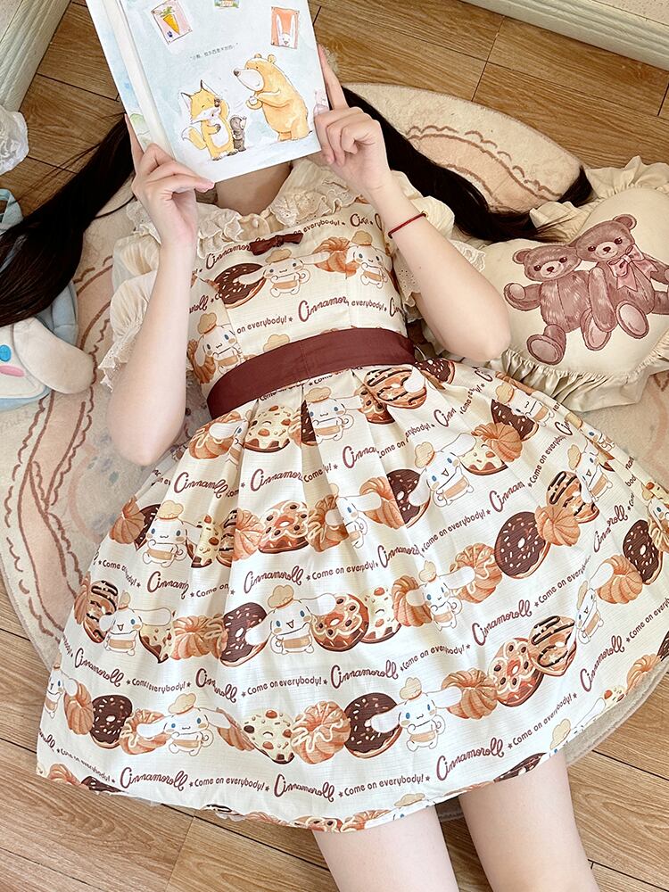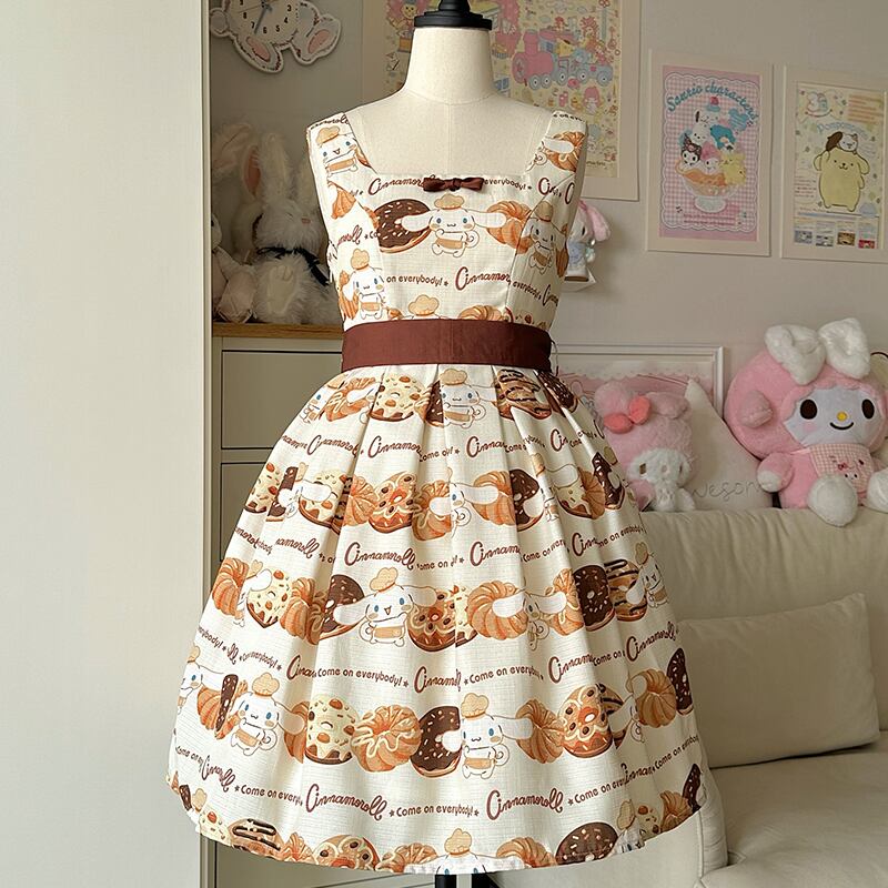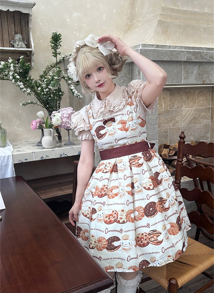 【送料無料】入荷済み「告白気球家 × サンリオ コラボ商品・シナモロール ドーナツ柄」ジャンパースカート