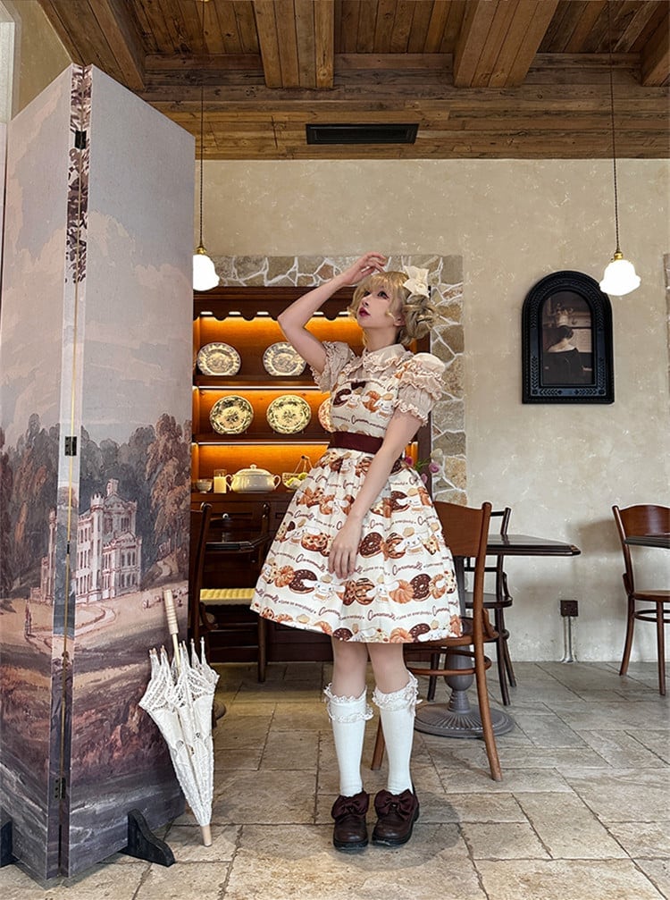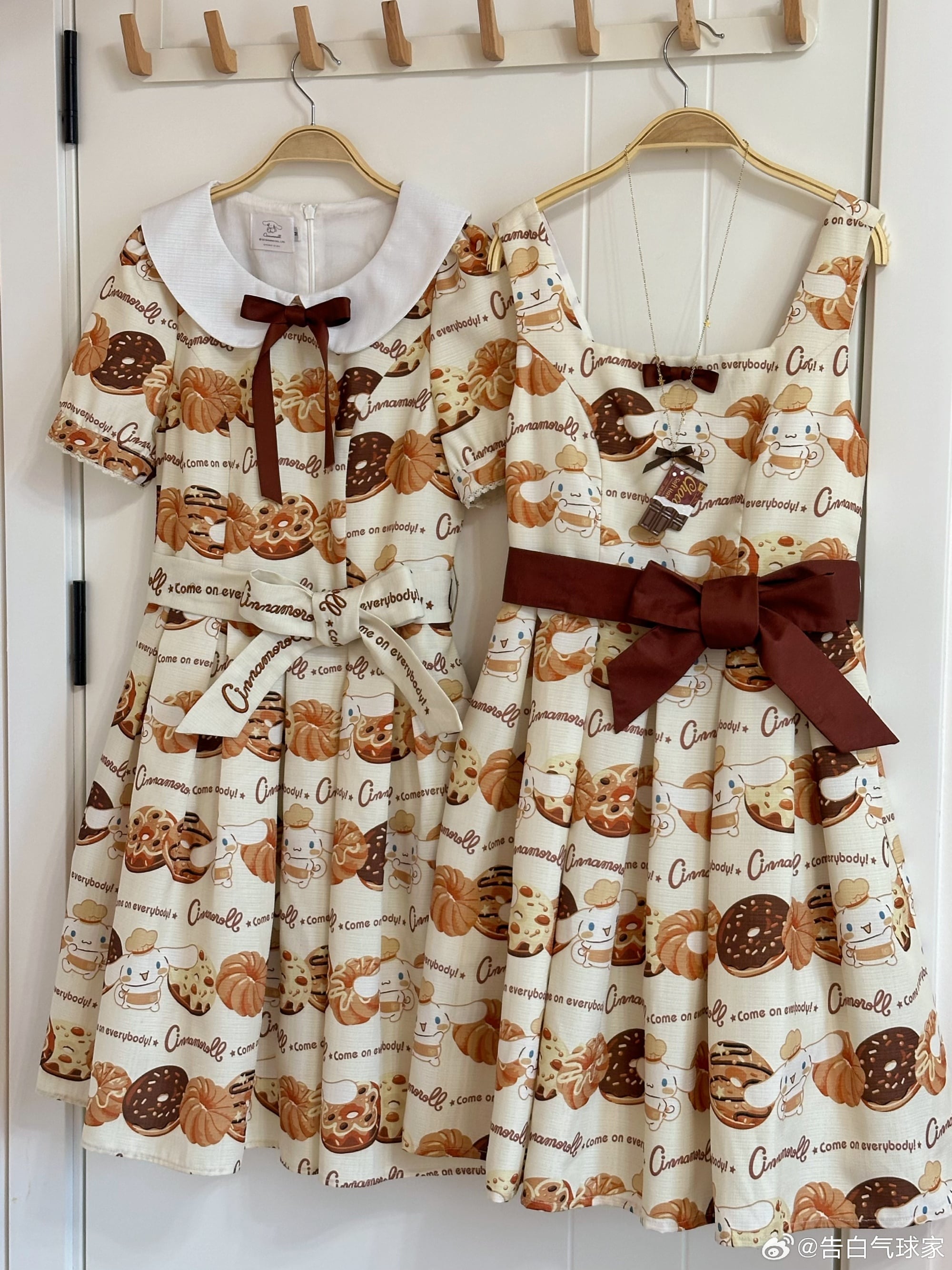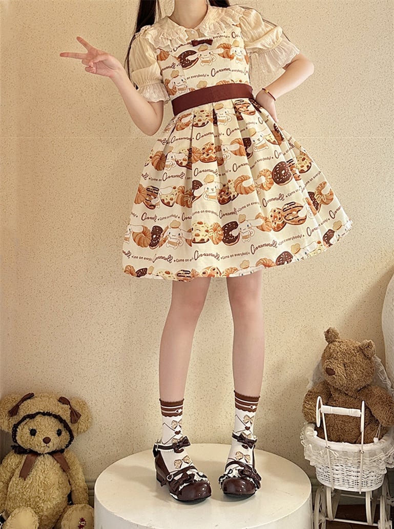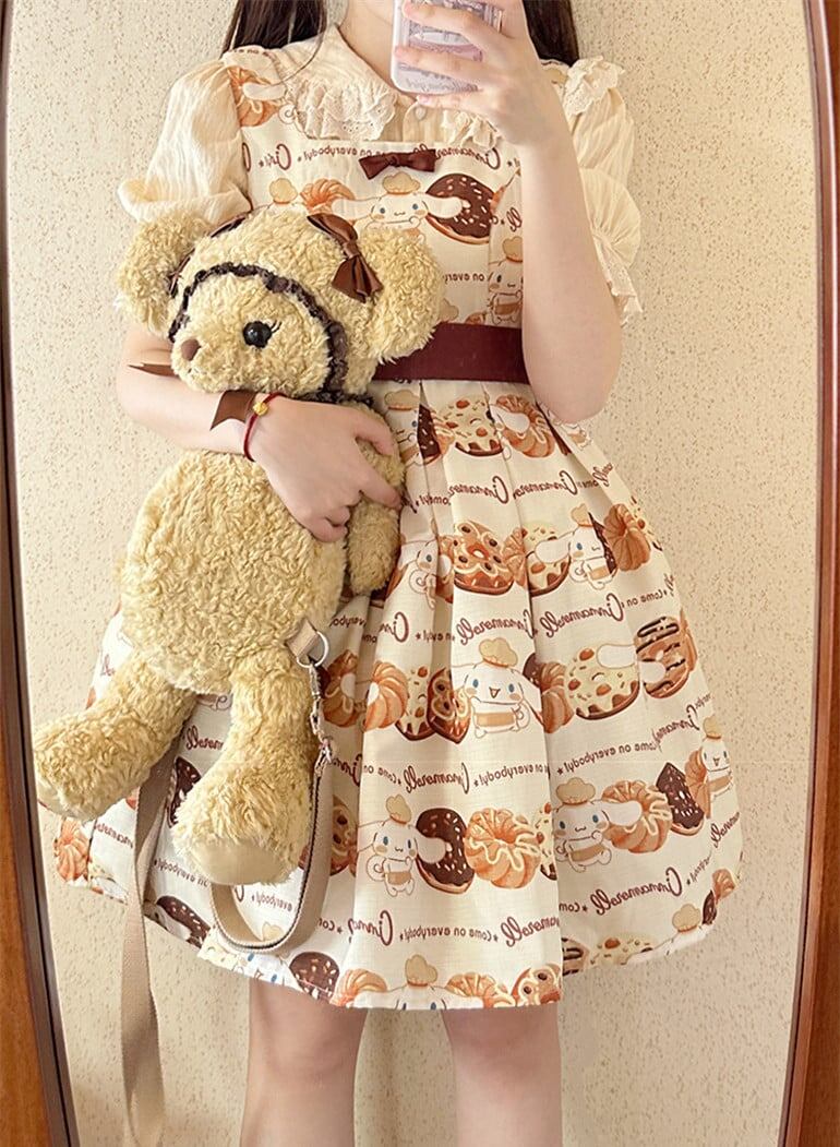 【送料無料】入荷済み「告白気球家 × サンリオ コラボ商品・シナモロール ドーナツ柄」ジャンパースカート